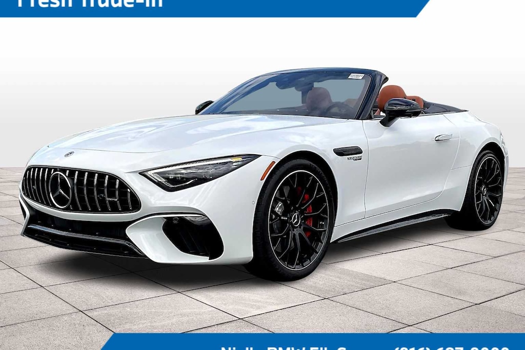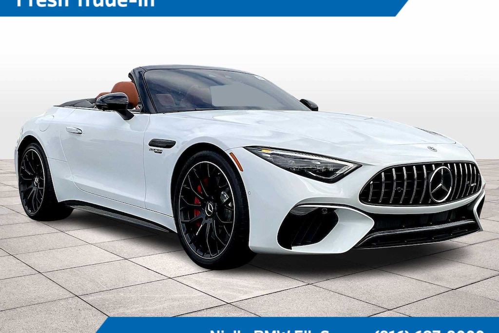 Leather Seats, Navigation, Automatic Full-Time All-Wheel, Quad Bucket Seats, Power Liftgate Mercedes-Benz AMG® SL 55 with MANUFAKTUR Moonlight White Metallic exterior and Sienna Brown/Black interior features a 8 Cylinder Engine with 469 HP at 5500 RPM*.